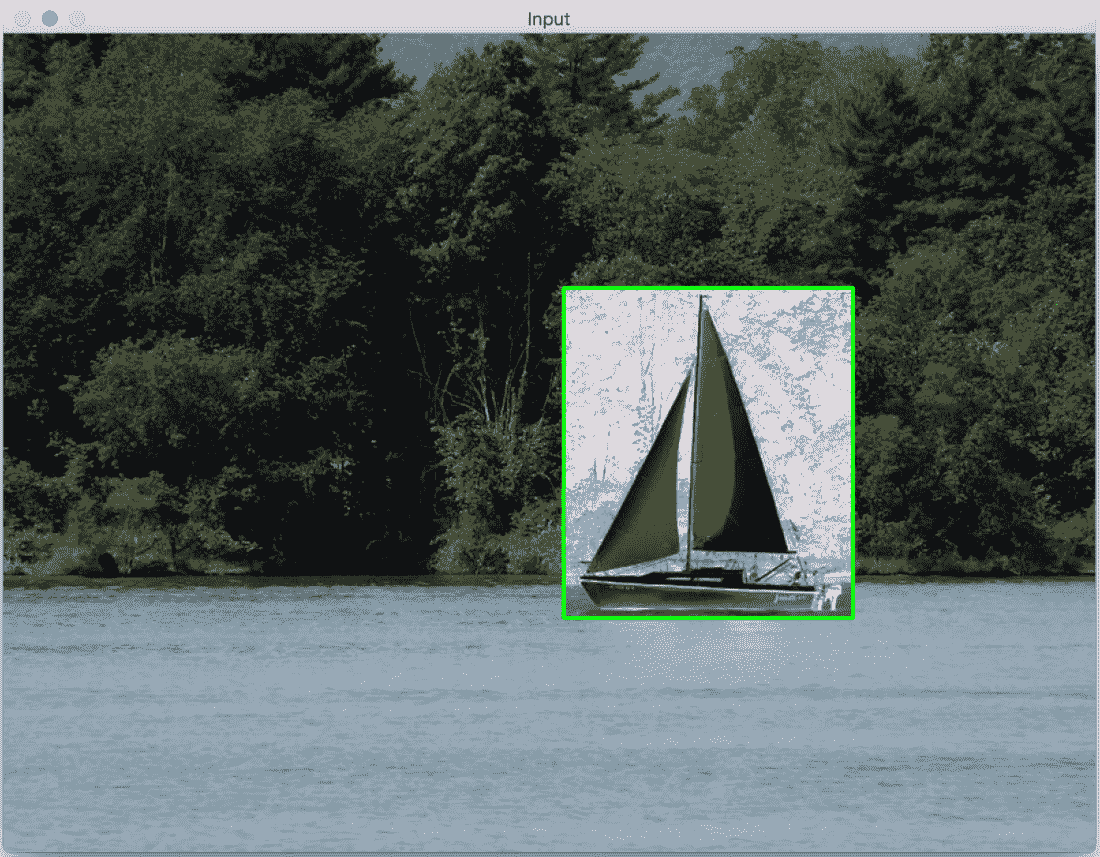 如您所见,我们在窗口顶部绘制了一个绿色矩形。 一旦我们有了那个矩形的坐标,我们就只能在那个区域上行动了。