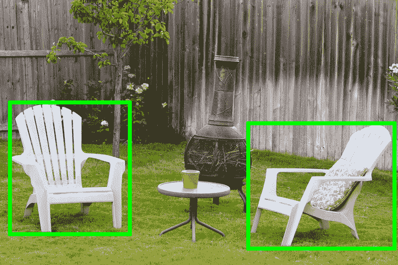 如果你在这张图片上运行椅子探测器,它会在所有的椅子周围放一个绿色的方框-但它不会告诉你这是哪种椅子。