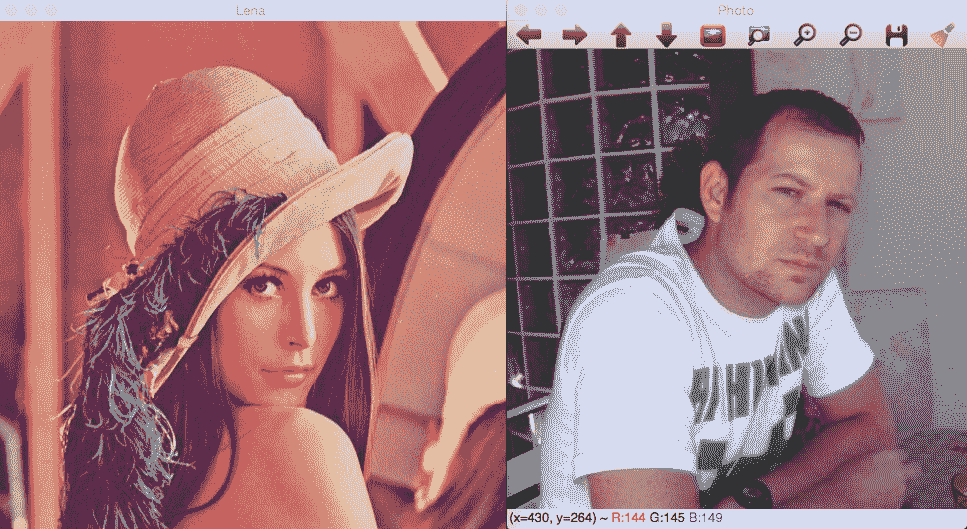 Lena窗口10像素,向上移动10像素,向左移动Photo窗口520像素,向上移动10像素: