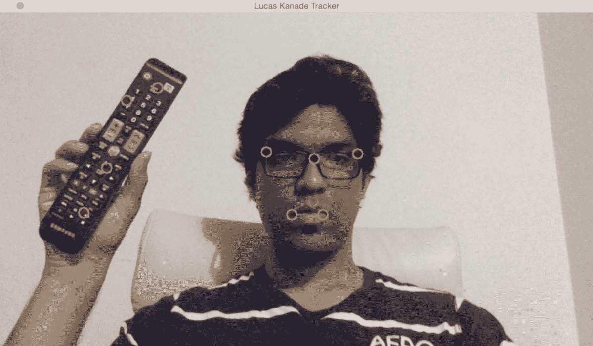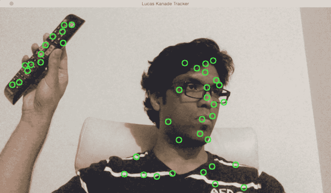 我们使用当前图像和前一图像来计算光流信息。 不用说,输出的质量将取决于所选择的参数。 有关参数的更多详细信息,请访问http://docs.opencv.org/2.4/modules/video/doc/motion_analysis_and_object_tracking.html#calcopticalflowpyrlk。 为了提高质量和健壮性,我们需要过滤掉彼此非常接近的点,因为它们不会添加新的信息。 让我们继续这样做: