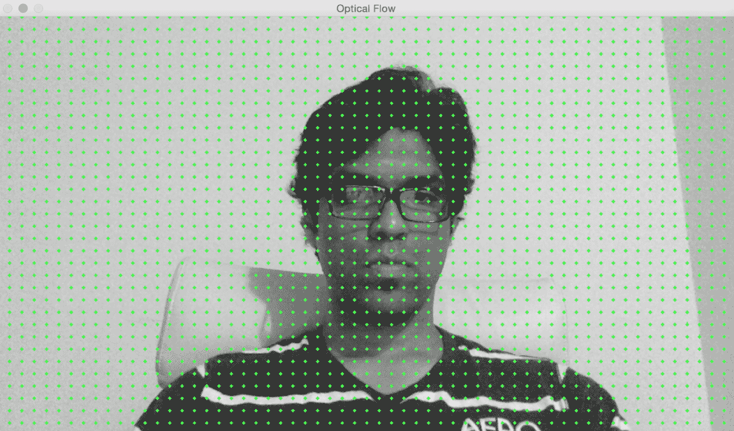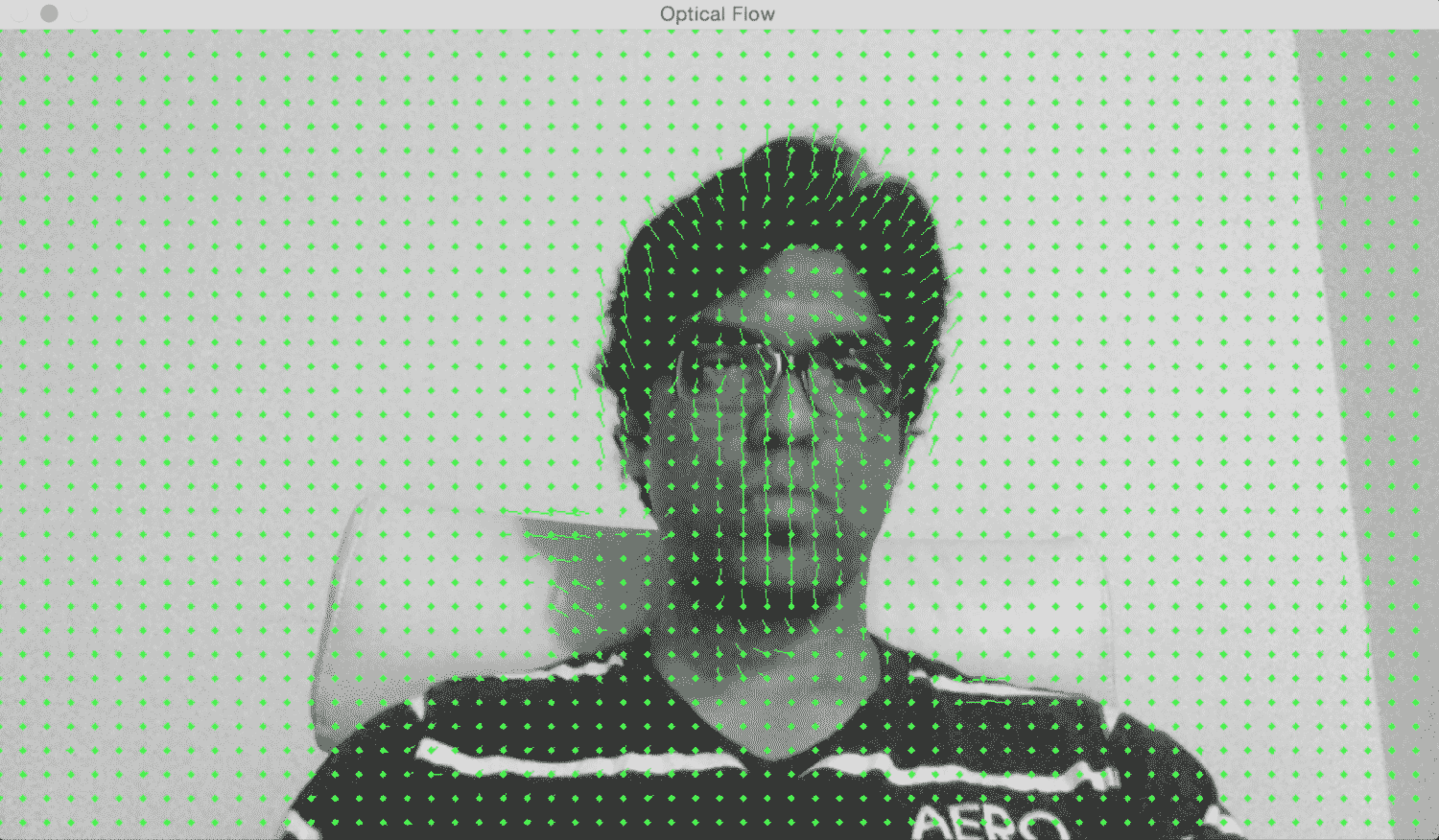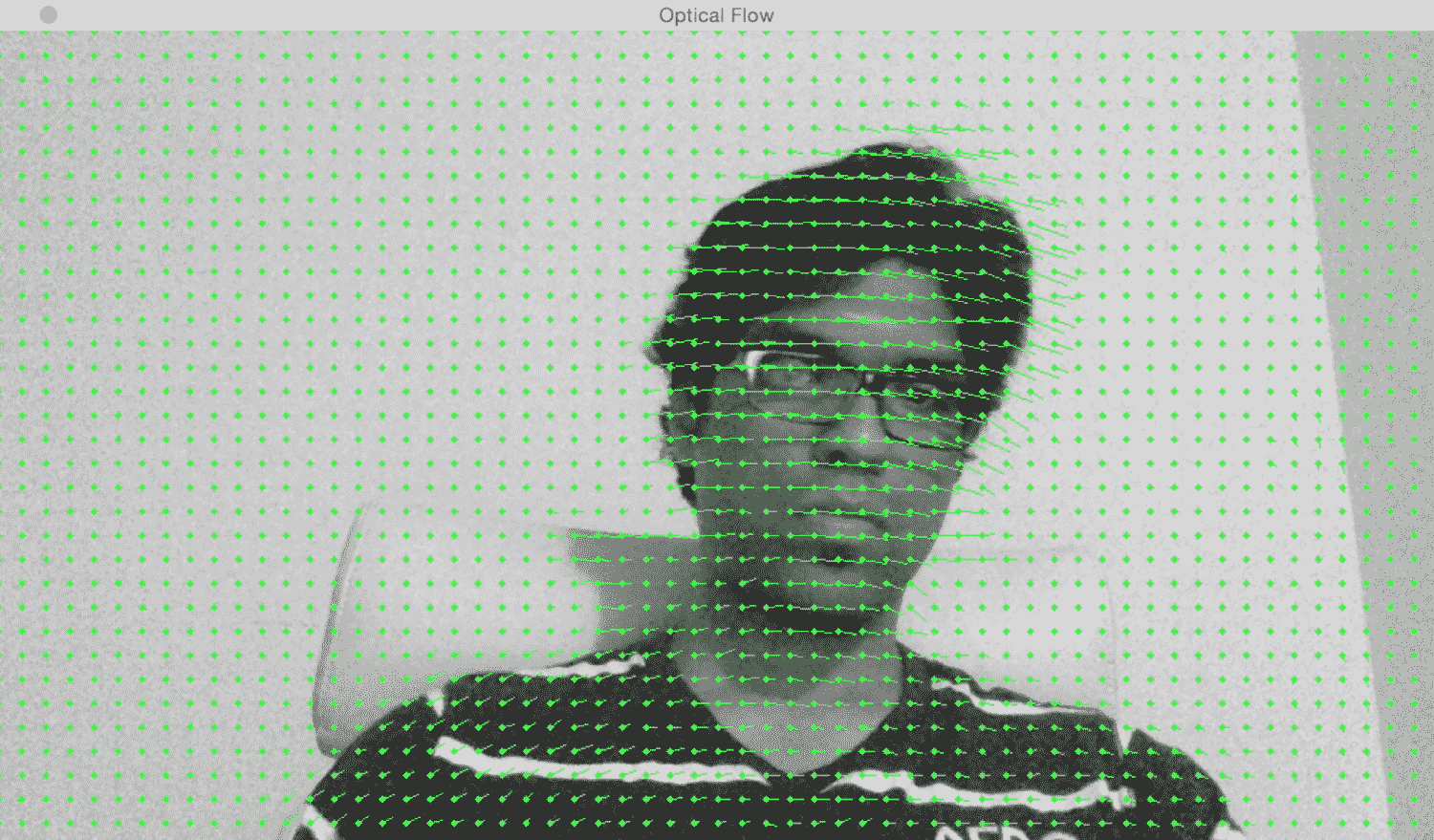 我们使用一个名为drawOpticalFlow的函数来绘制这些光流矢量。 这些矢量表示运动的方向。 让我们看一下该函数,看看我们是如何绘制这些向量的: