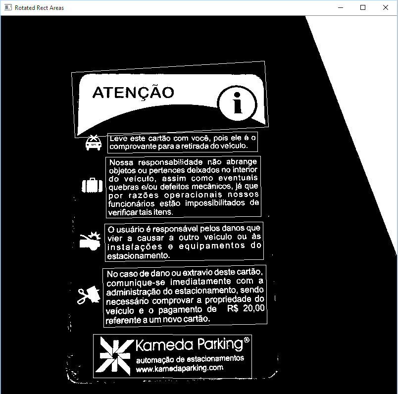 vector RotatedRect; findTextAreas(Mat input)