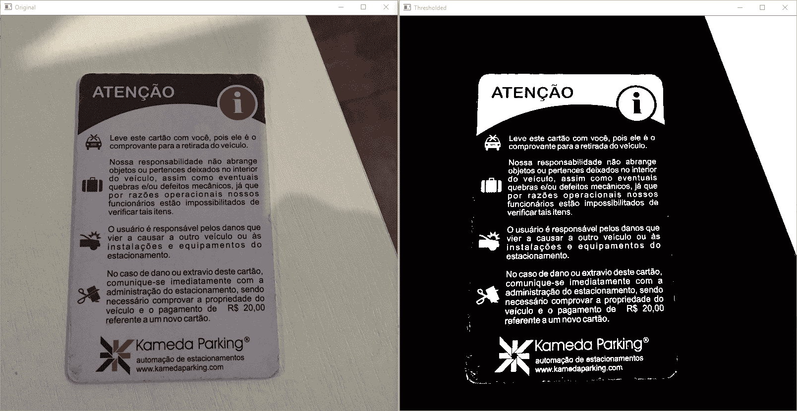对停车罚单图像进行阈值处理的结果如下:
