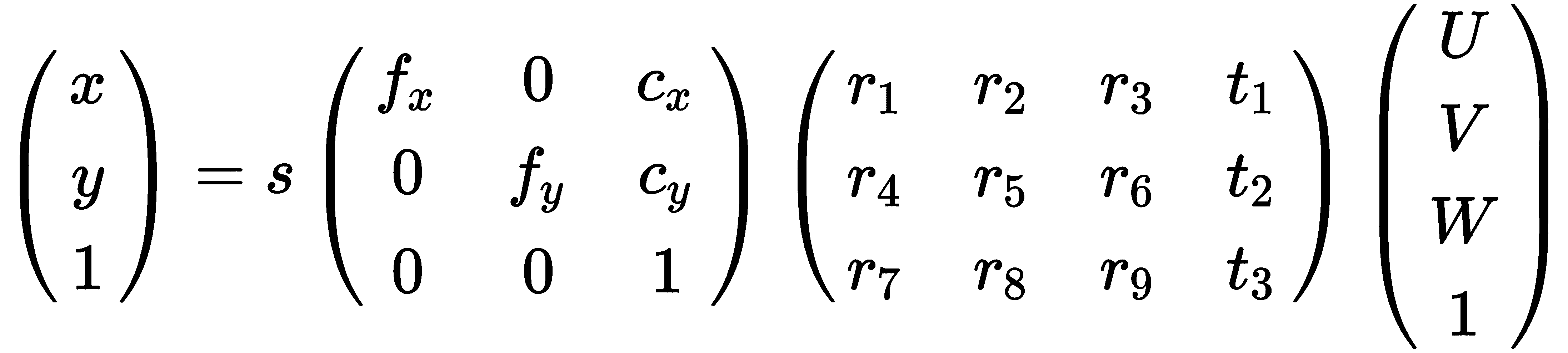 表示图像中的点。 这个等式还包括一个投影,它由相机内部参数(焦距f和中心点c)控制,它将 3D 点转换为 2D 图像点,最高可达s。如果说我们通过校准相机获得内部参数,或者我们对它们进行近似,我们就需要找到 12 个用于旋转和平移的系数。 如果我们有足够的 2D 和 3D 对应点,我们可以写出一个线性方程组,每个点可以贡献两个方程,来求解所有这些系数。 事实上,事实证明我们不需要 6 个点,因为旋转不到 9 个自由度,我们只需要 4 个点就可以凑合了。 OpenCV 提供了使用calib3d模块的cv::solvePnP函数查找旋转和平移的实现。