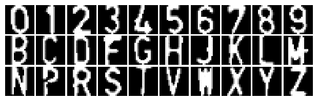 - 致密层 7:包含30 个神经元,每个数字和字符对应一个神经元