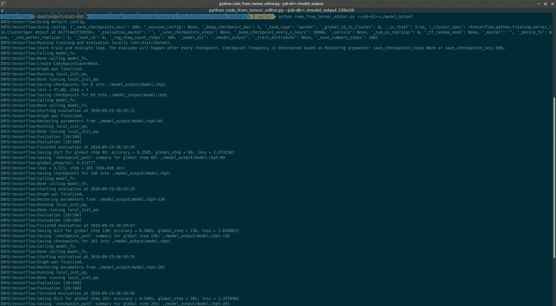 完成培训后,所有模型和变量都存储在启动 TensorFlow 脚本时定义的作业文件夹中。 现在,我们必须准备完成的结果,以便将其集成并导入到 OpenCV 中。