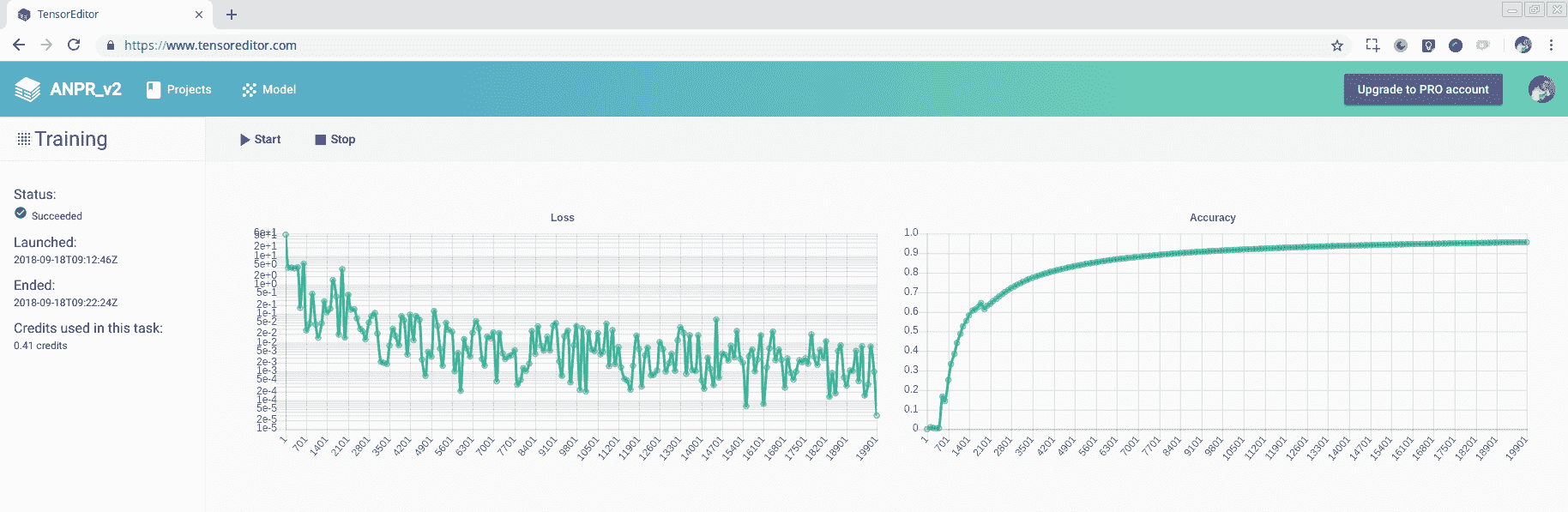 TensorEditor 是一个在线工具,它允许我们为 TensorFlow 创建模型并在云上进行训练,或者下载 Python2.7 代码并在本地执行。 注册在线免费下载工具后,即可生成模型,如下图所示: