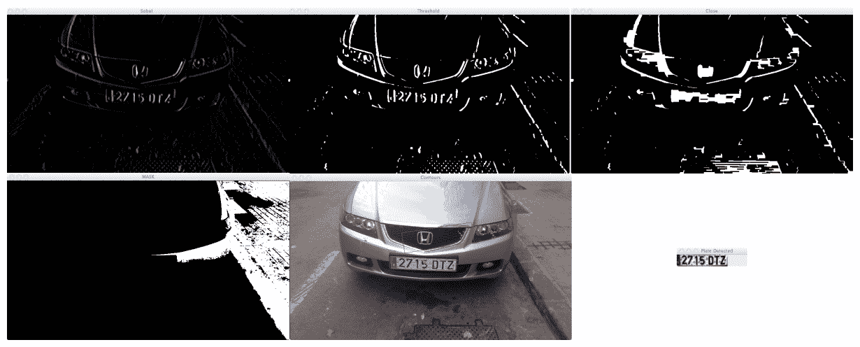 在下图中,我们将展示车牌检测涉及的每个进程: