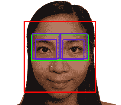 正如前面提到的,如果我们给人脸检测器一个缩小的图像,结果也会缩小,所以如果我们想要看到原始图像的人脸区域,就需要放大它们。 我们还需要确保图像边界上的面完全位于图像内,因为如果发生这种情况,OpenCV 现在将引发异常,如以下代码所示: