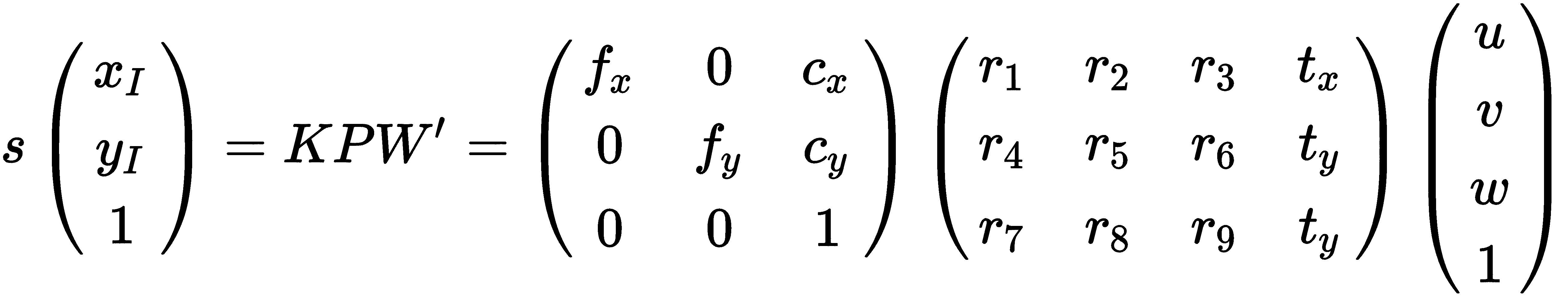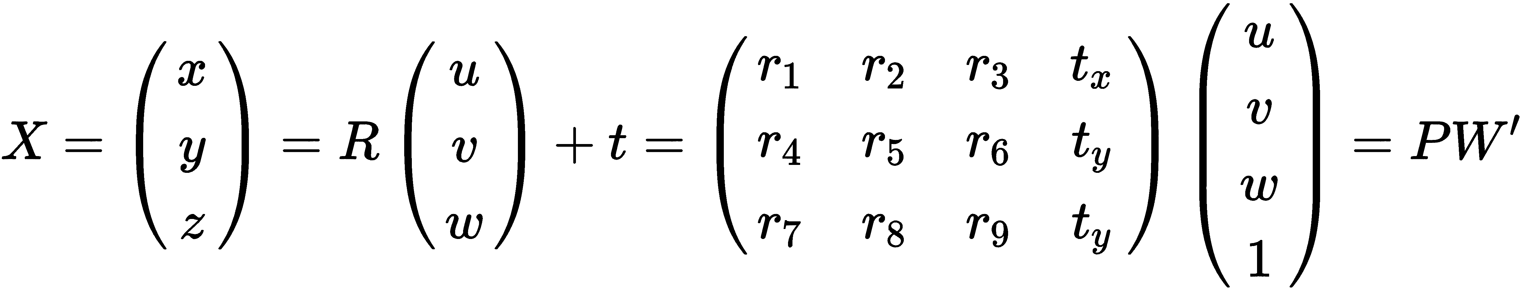 其中W‘是 3D 点W的齐次坐标,该坐标是通过将 1 加到矢量末尾而获得的。