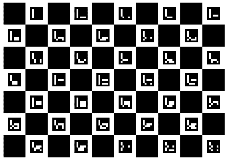 要运行这些示例,需要一块打印的校准板。 电路板图像可以使用 ArUcocv::aruco::CharucoBoard::draw函数以编程方式生成,然后可以使用家用打印机打印。 如果将纸板粘在硬质表面,如纸板或塑料板上,效果最好。 打印电路板后,应精确测量电路板标记的大小(使用尺子或卡尺),以使校准结果更准确、更真实。