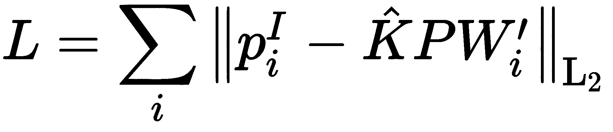 摄像机标定的过程是求出K系数(以及畸变参数)的过程,这是计算机视觉中任何精确工作的基础步骤。 它通常是通过给定相关 3D 和 2D 点的测量的优化问题来完成的。 给定足够的对应图像点(xi,yi)和 3D 点(u,v,w),可以构造如下的重投影成本函数: