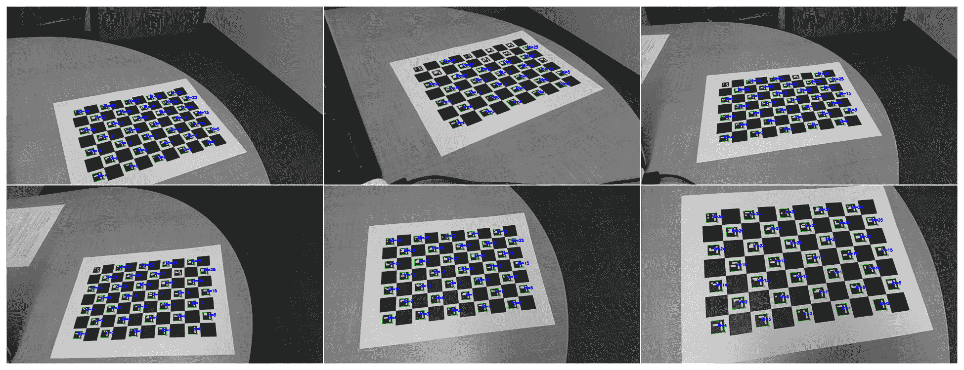 在获得足够的图像(来自不同视点的大约 10 个图像通常就足够了)之后,校准按钮调用另一个运行aruco::calibrateCameraAruco函数的本机函数,保存的点对应关系数组如下所示:
