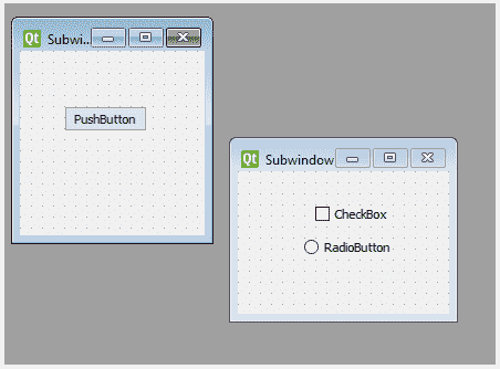 QAbstractButton类,该类是一个抽象类,提供了类按钮小部件所需的所有接口。 - 按钮:这些按钮可用于在用户界面上添加带有文本和/或图标的简单按钮(此小部件的等效 Qt 类称为