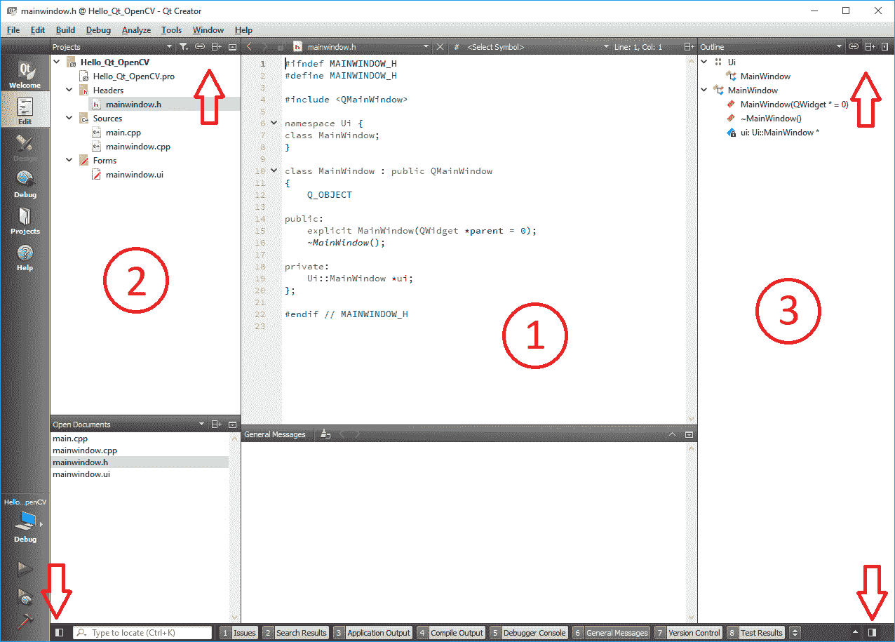 请注意,我们一定会使用所有 Qt Creator 功能,但是在深入研究之前先知道它的功能是一个好主意。 以下是 Qt Creator 的一些最重要的功能: