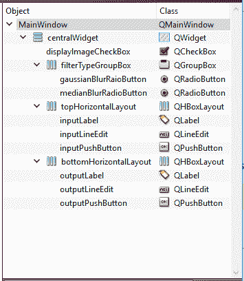 所有OpenCV函数都包含在cv名称空间中,因此我们确保我们是 OpenCV namespace cv的using。 然后,为了读取输入图像,我们使用了imread函数。 这里要注意的重要一点是 OpenCV 使用 C++ std::string类,而 Qt 的QString应该转换为该格式,否则,当您尝试运行该程序时会遇到错误。 只需使用QString的toStdString函数即可完成。 注意,在这种情况下,QString是inputLineEdit小部件的text()函数返回的值。