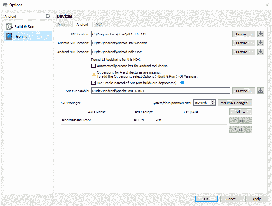 - 设备:如您在第 12 章,“Qt Quick 应用”中所看到的,将在其中使用它来配置 Qt Creator 进行 Android 开发,包括与设备相关的所有设置。