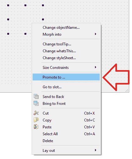 QWidget类的空窗口小部件,然后从弹出菜单中选择“升级到”: