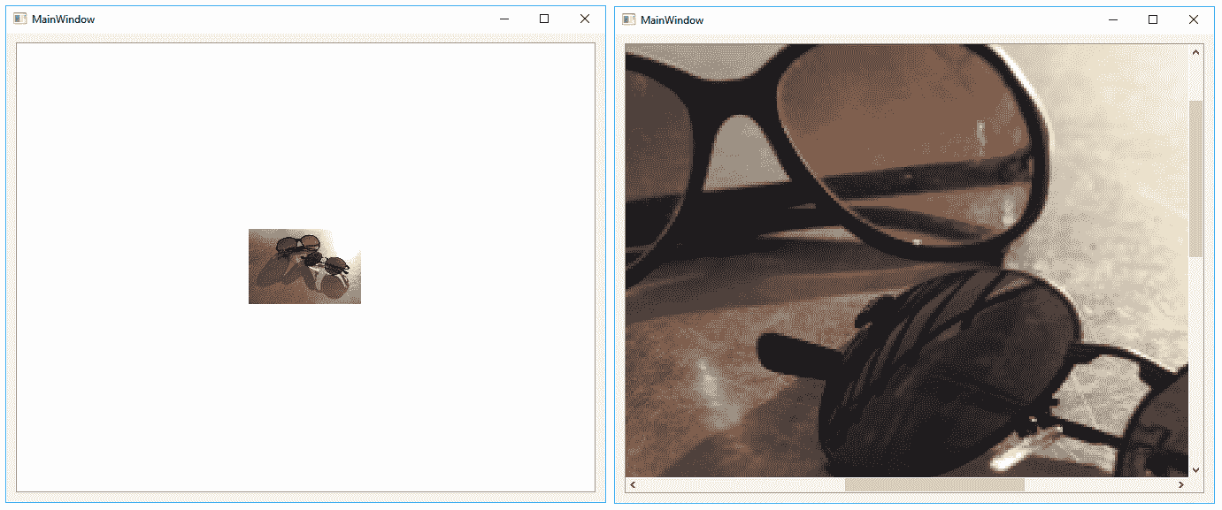 现在,您可以启动应用,并尝试使用鼠标滚轮滚动。 向上或向下旋转轮子时,您可以看到比例级别的变化。 这是放大和缩小图像时结果应用的屏幕截图: