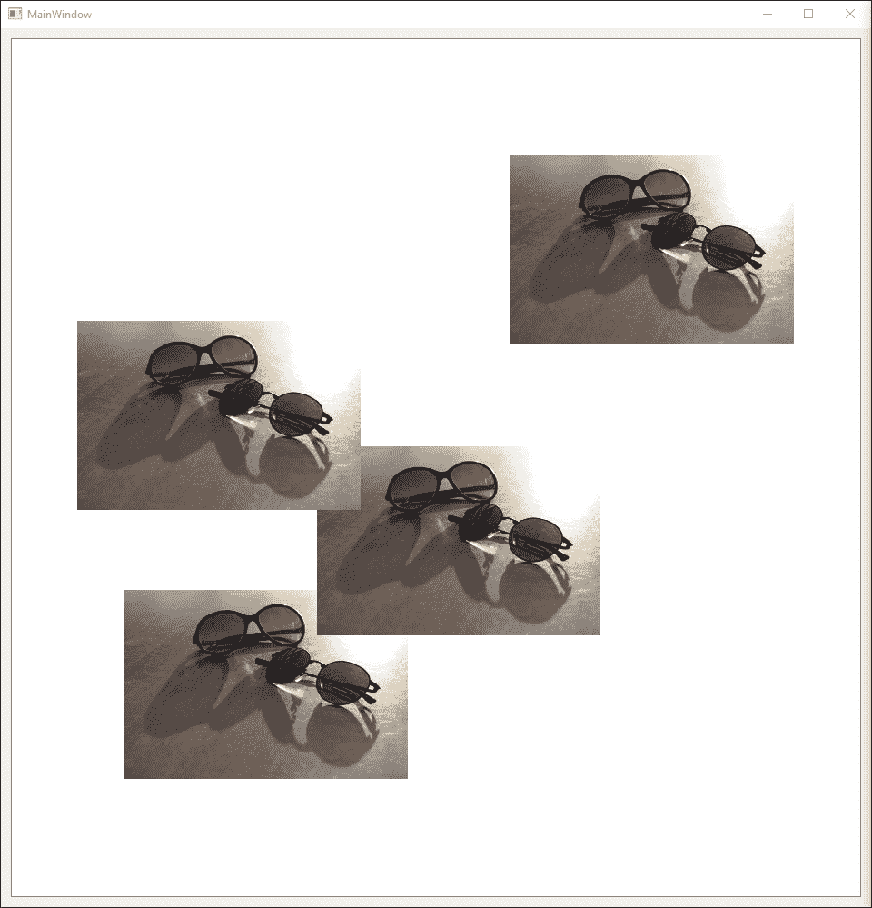 就是这样,现在不需要其他任何东西。 启动Graphics_Viewer应用,然后尝试将图像放入其中。 在第一张图像之后,尝试缩小并添加更多图像。 (请不要通过夸大此测试来填充内存,因为如果您尝试添加大量图像,则您的应用将开始消耗过多的内存,从而导致操作系统出现问题。不用说,您的应用可能会崩溃 。)以下是在场景中各个位置拖放的一些图像的屏幕截图: