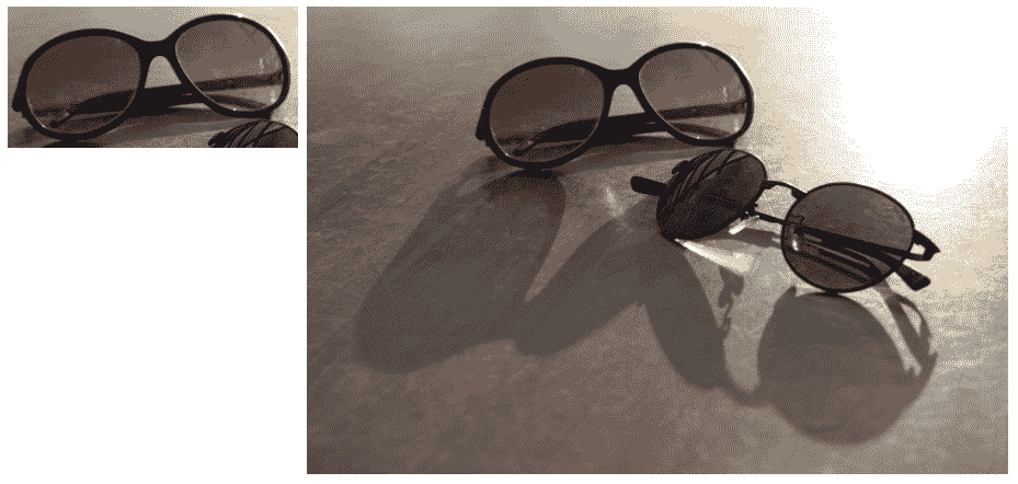 这实际上不是对这种方法功能强大程度的测试,因为对象基本上是从同一图像上剪切下来的。 这是运行相同过程的结果,但是这次第二张图像发生了旋转和透视图变化,甚至出现了一些噪点(这是使用智能手机从屏幕上拍摄的图像)。 即使第一张图片的一小部分在视图之外,结果也几乎是正确的: