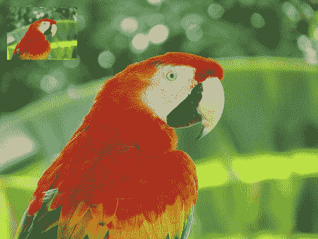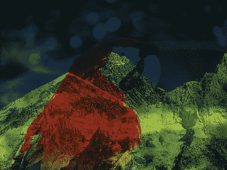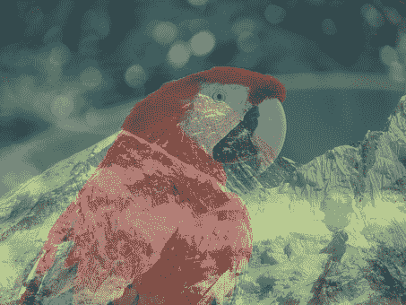 im1 = Image.open("../images/parrot.png")im2 = Image.open("../images/hill.png").convert('RGB').resize((im1.width, im1.height))multiply(im1, im2).show()