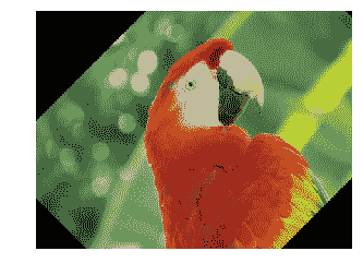 im = imread("../images/parrot.png")swirled = swirl(im, rotation=0, strength=15, radius=200)plt.imshow(swirled)plt.axis('off')plt.show()