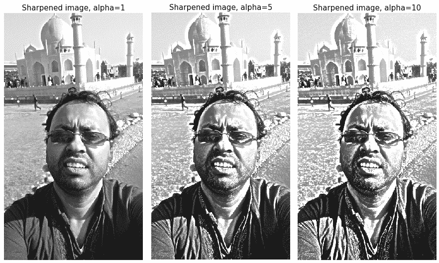 下面的屏幕截图显示了前面代码块的输出。可以看出,随着α值的增加,输出变得更尖锐: