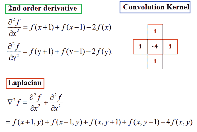 是一个标量(与梯度不同,梯度是一个向量)- 使用单个核(掩码)计算拉普拉斯函数(与梯度不同,梯度通常有两个核,x和y方向的偏导数)