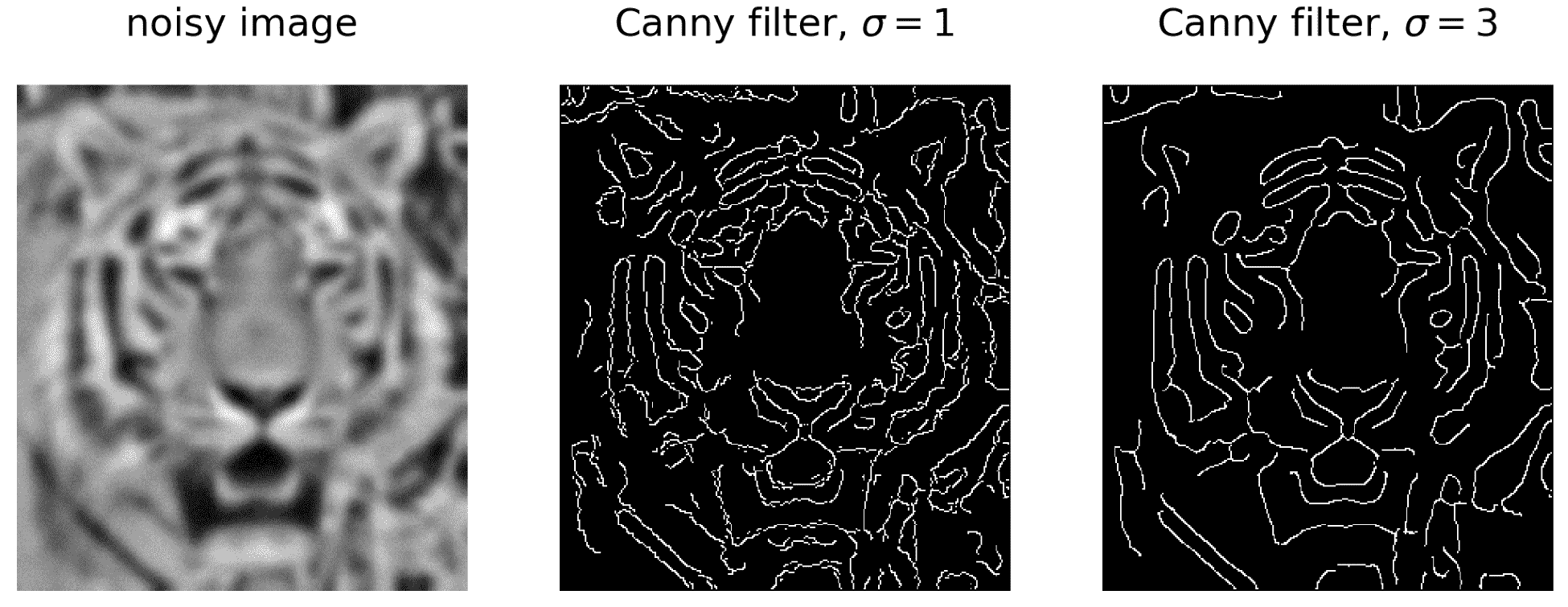 下面的屏幕截图显示了前面代码块的输出,在不同的σ标度下,边缘仅通过零交叉来识别: