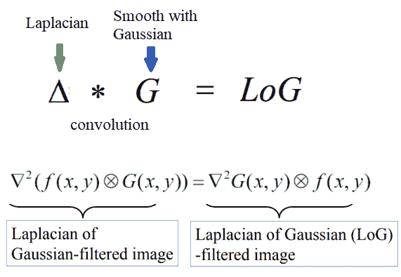 然后,平滑后的图像需要用拉普拉斯滤波器进行卷积,得到输出图像为∇ 2(I(x,y)G(x,y))*。