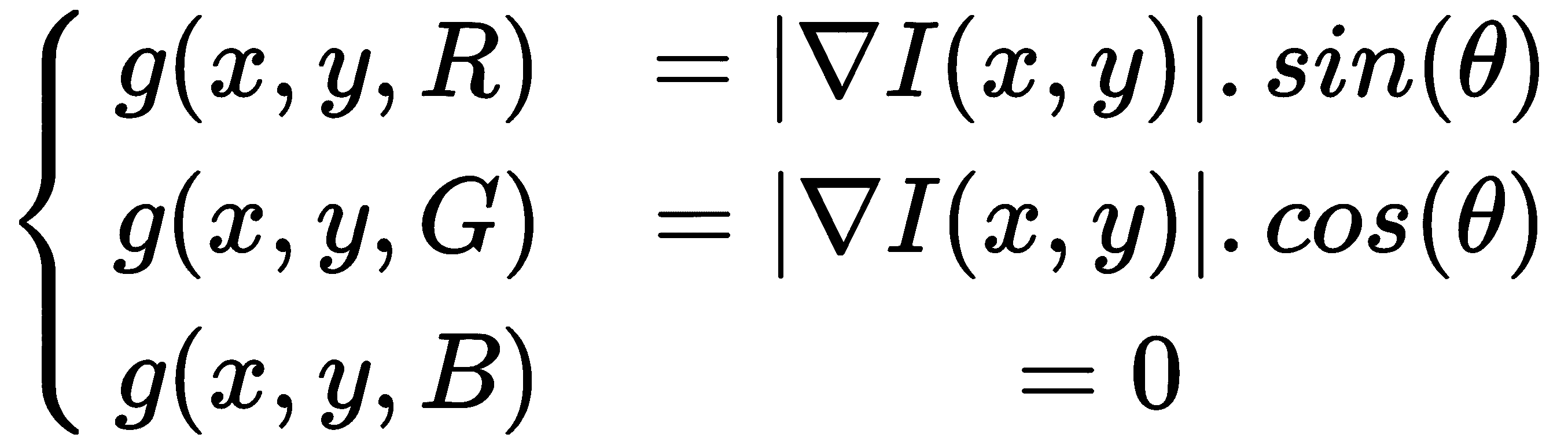 在前面的示例中,边缘的大小和方向显示在不同的图像中。我们可以创建一个 RGB 图像,并将R、G和B的值设置为如下,以在同一图像中显示大小和方向: