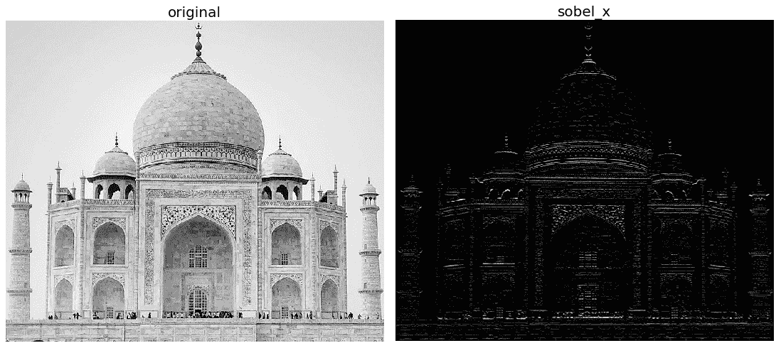 pylab.subplot(231), plot_image(im, 'original'), pylab.subplot(232), plot_image(im_x, 'grad_x')