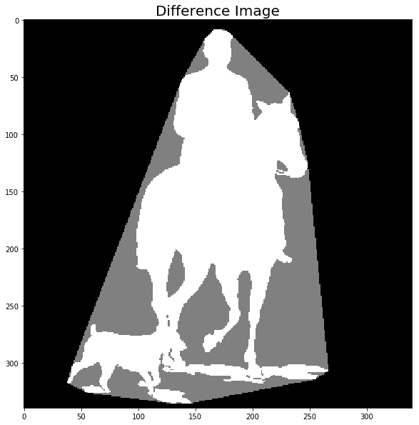 以下代码块绘制原始二值图像和计算的凸包图像的差异图像: