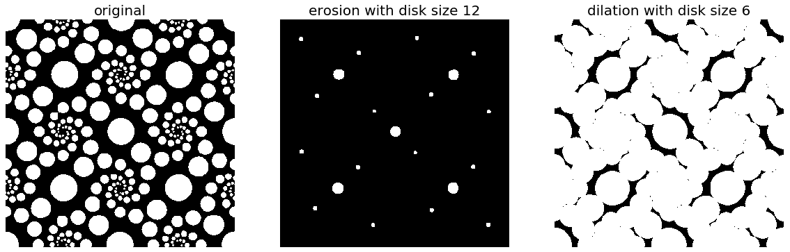 pylab.subplot(1,3,2), plot_image(im1, 'opening with disk size ' + str(12))