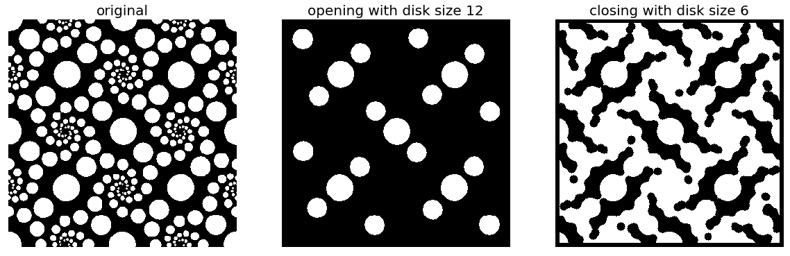 pylab.subplot(1,3,3), plot_image(im1, 'closing with disk size ' + str(6))
