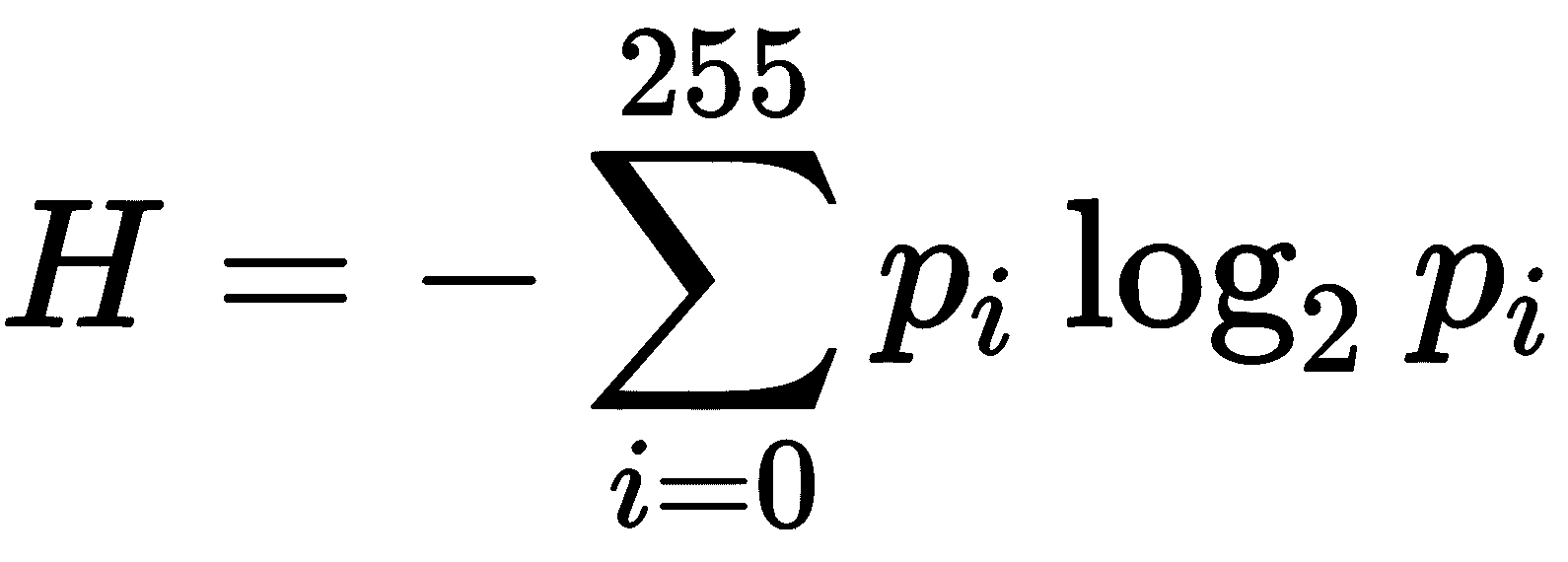 在前面的公式中,pi是与灰度i相关联的概率(从图像的归一化直方图中获得)。此公式计算图像的全局熵。以类似的方式,我们也可以定义局部熵来定义局部图像复杂度,它可以从局部直方图中计算出来。