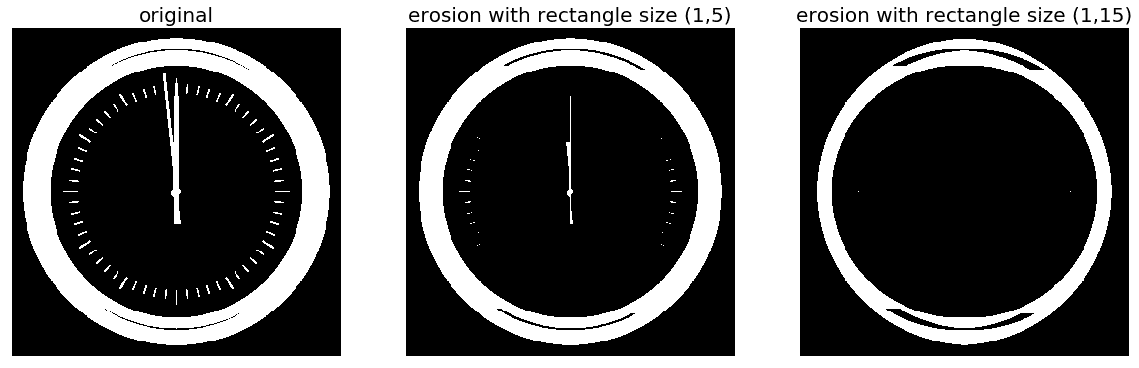 pylab.subplot(1,3,3), plot_image(im1, 'erosion with rectangle size (1,15)')
