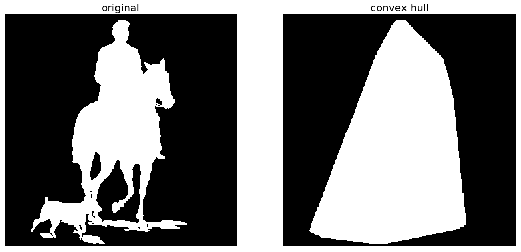 plot_images_horizontally(im, chull, 'convex hull', sz=(18,9))
