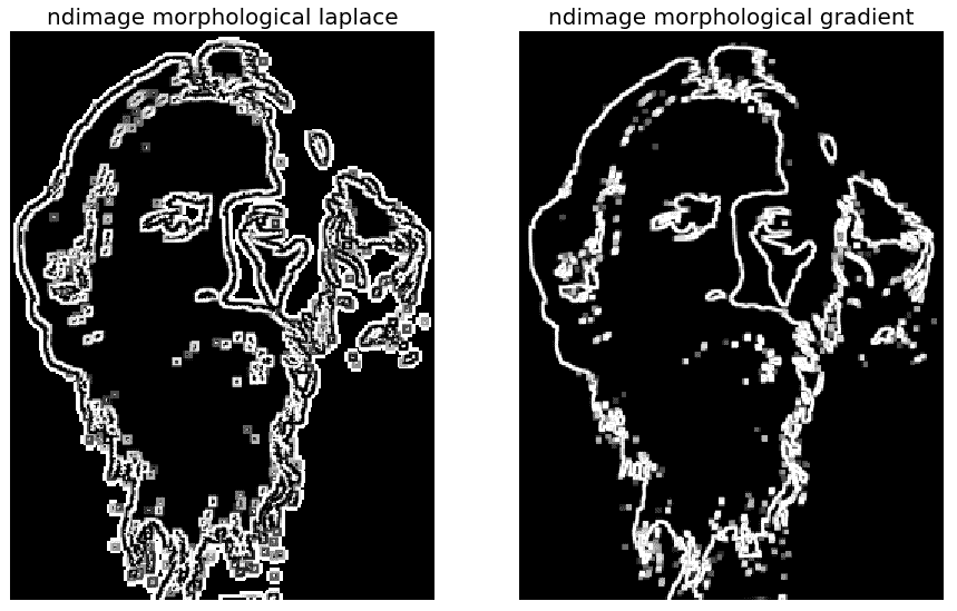 pylab.subplot(122), pylab.title('ndimage morphological gradient', size=20),