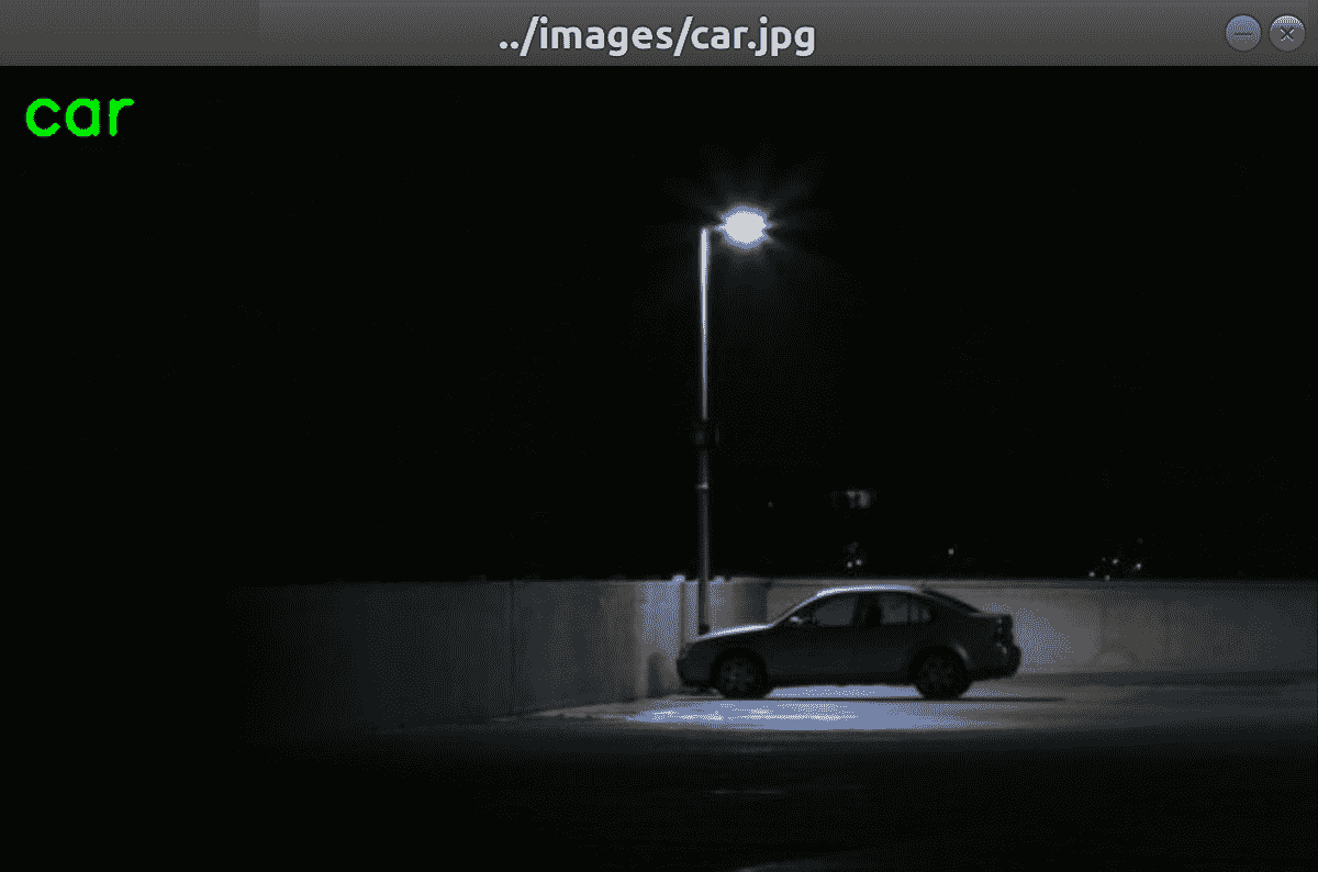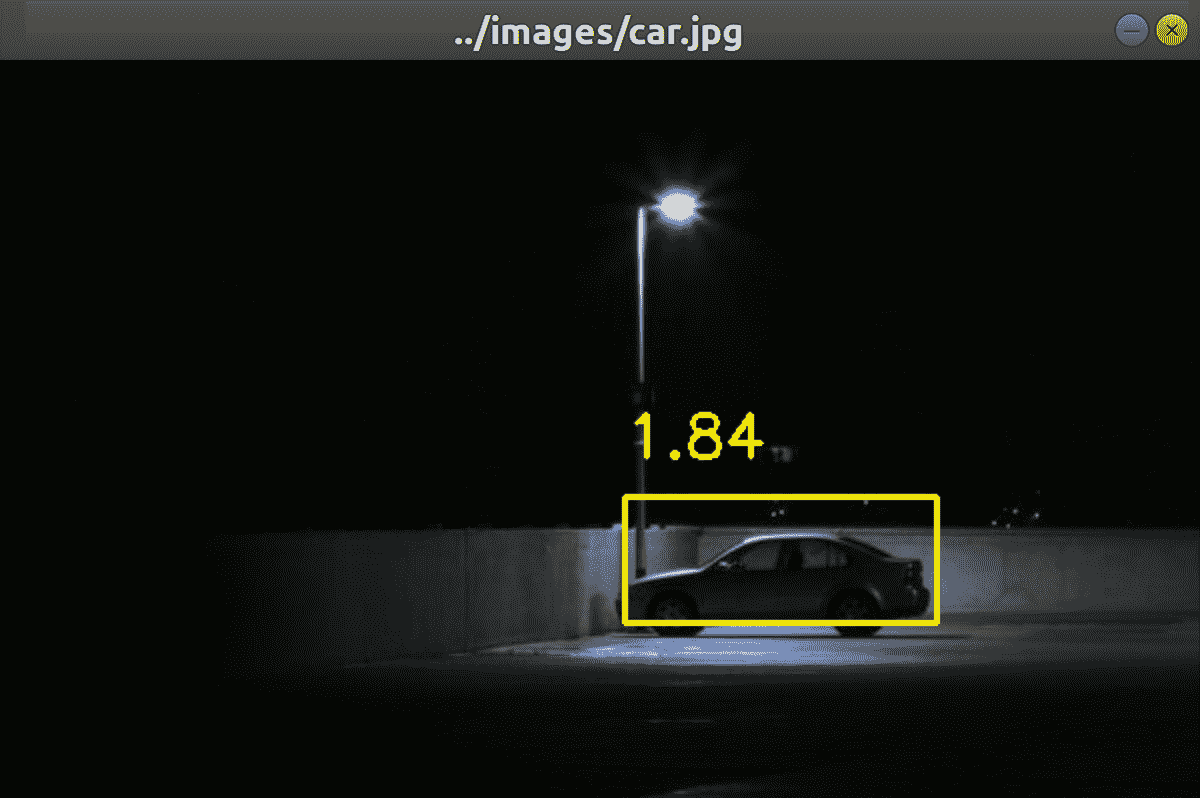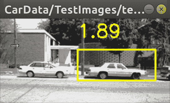 我们的另一个测试图像中有两辆车。 碰巧的是,成功检测到一辆汽车,而另一辆则未成功,如以下屏幕截图所示:
