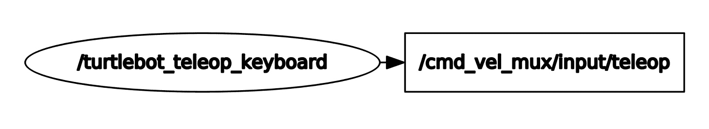 当我们按下键盘上的按钮时,它将向扭转驱动器控制器发送 Twist 消息,并且该控制器将在模拟中移动机器人。 Teleop 节点发送一个名为/cmd_vel_mux/input/teleop(geometry_msgs/Twist)的主题,如下图所示: