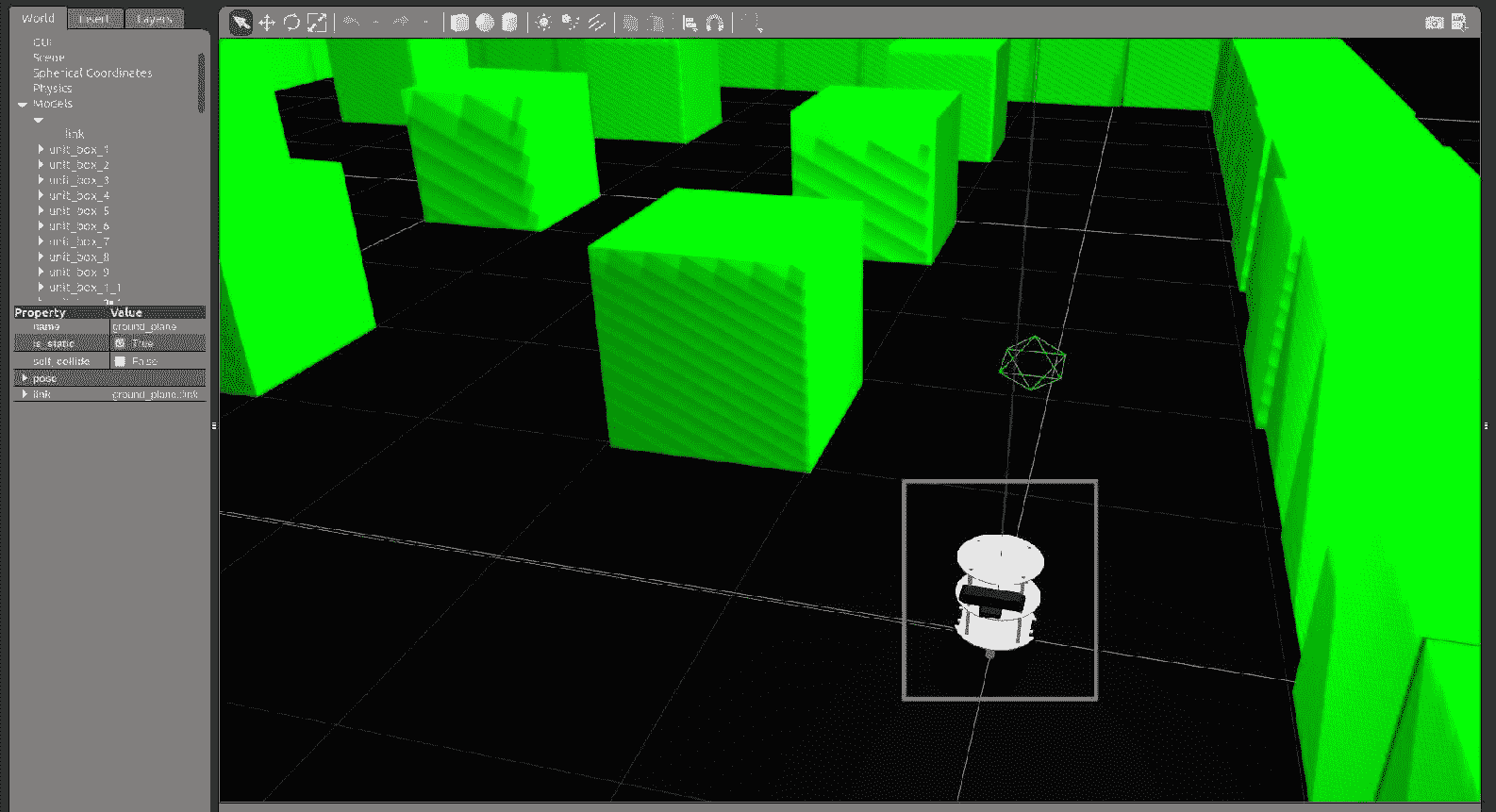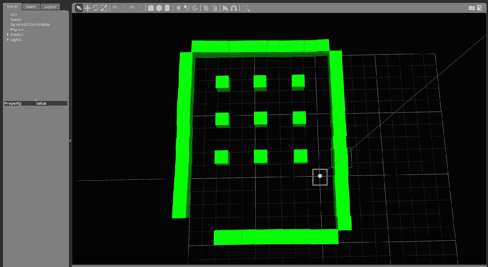 - 世界:世界选项卡包含当前 Gazebo 场景中的模型列表。 在这里,我们可以修改模型参数(例如姿势),也可以更改相机的姿势。