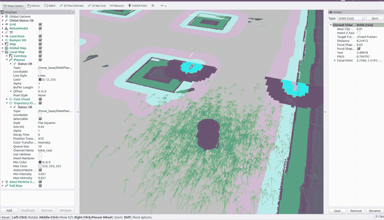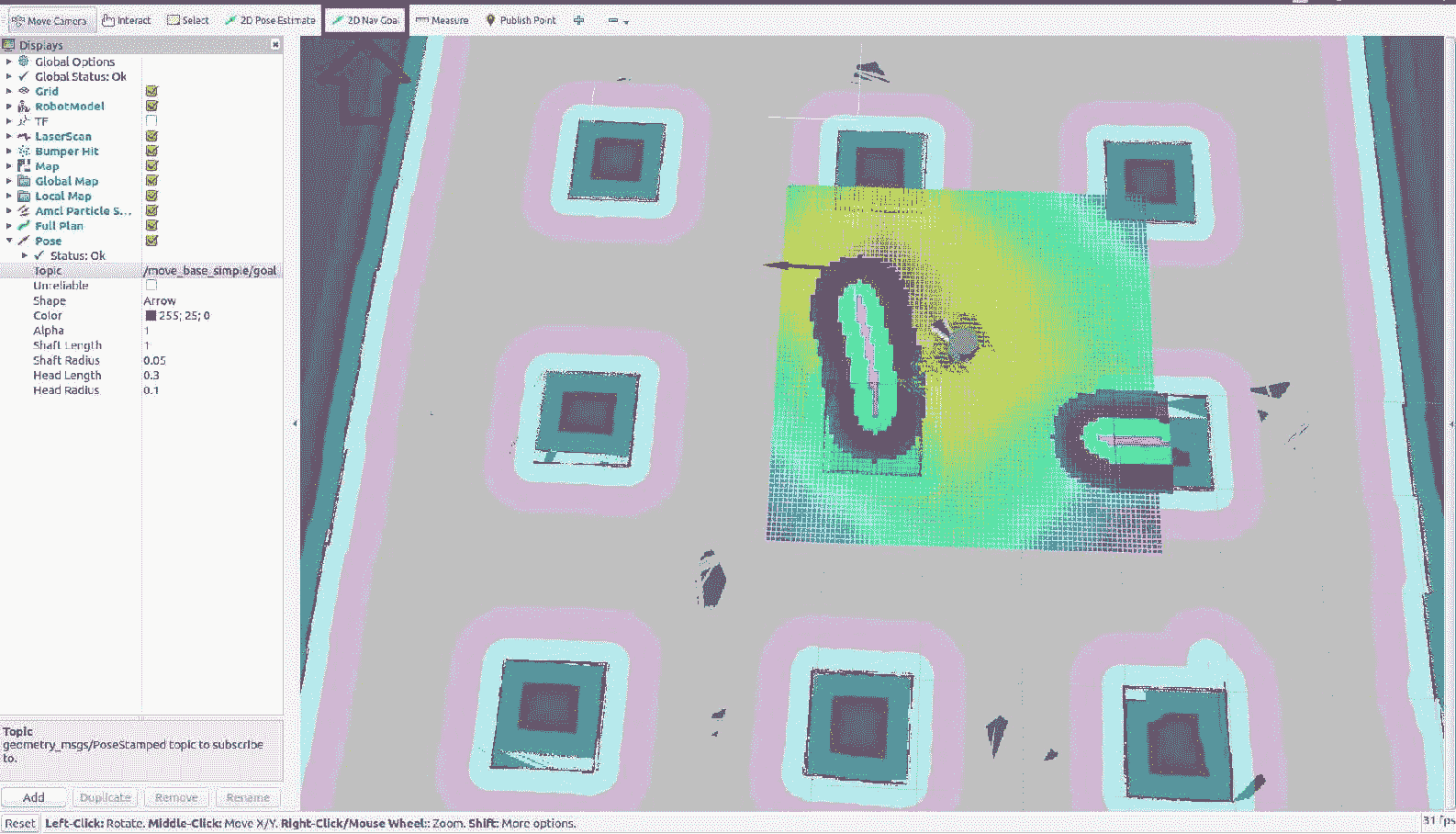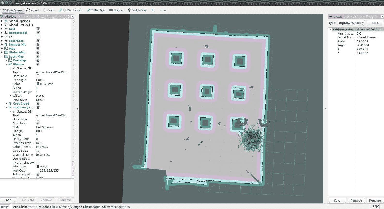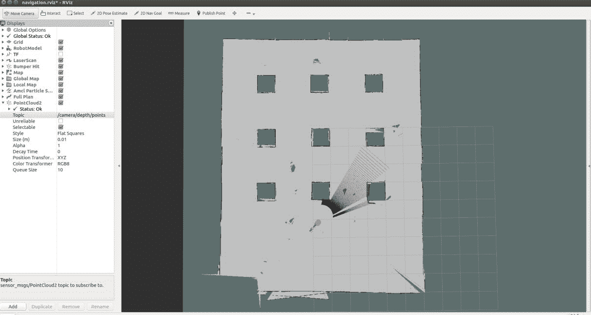 现在将开始映射。 为了可视化映射过程,我们可以在导航设置的帮助下启动 Rviz: