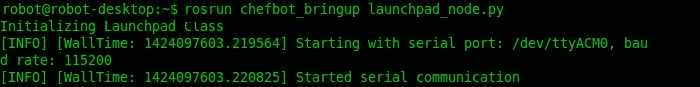 以下命令在 ChefBot 终端中启动机器人驱动程序: