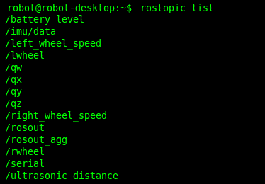 如果您看到任何主题,则设置完成。 我们首先可以使用键盘遥控操作机器人,以检查机器人的功能并确认是否获得传感器值。
