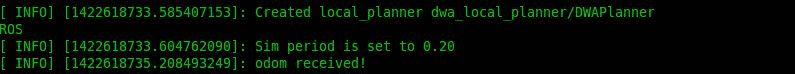 仅当收到的里程表值正确时,才能进行映射。 如果从机器人接收到里程计值,我们将收到有关前一条命令的以下消息。 如果收到此消息,我们可以确认 Gmapping 可以正常工作: