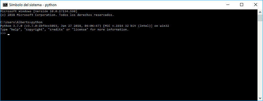 Python 3.7.0 (v3.7.0:1bf9cc5093, Jun 27 2018, 04:06:47) [MSC v.1914 32 bit (Intel)] on win32