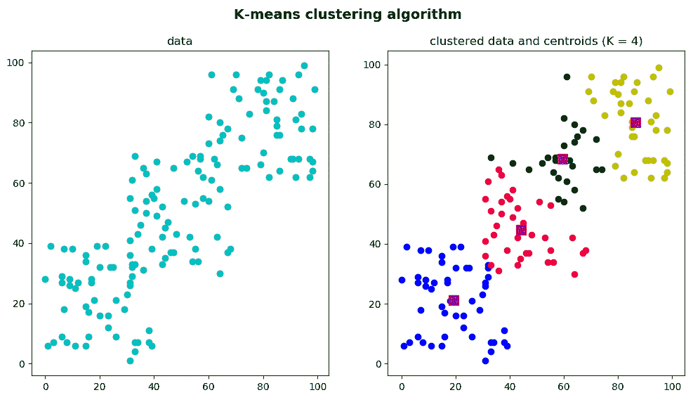 在第一个示例中,期望实现对 K 均值聚类的直观理解,而在第二个示例中,K 均值聚类将应用于颜色量化问题。