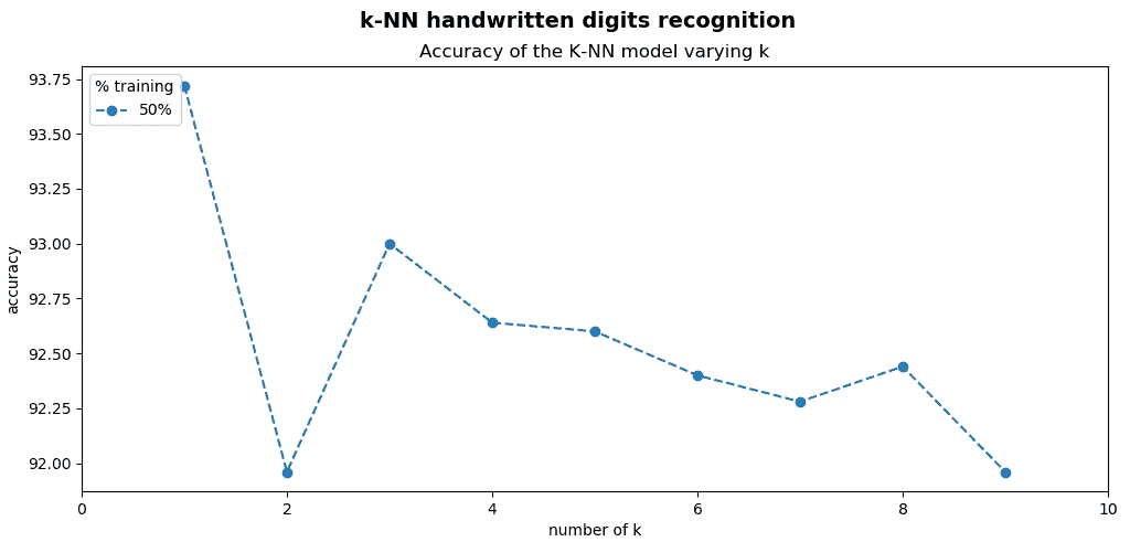 使用仅 50% 的数字来训练算法,所获得的精度为 98.60%。